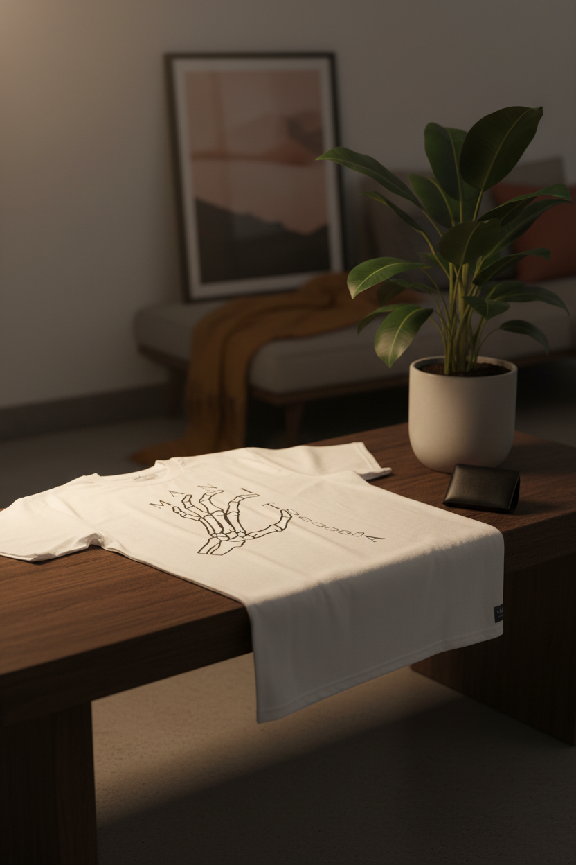 Entdecke unser lockeres Herren-Shirt mit minimalistischem Design und markanter Skeletthand-Grafik. Der entspannte Schnitt bietet maximalen Tragekomfort für deinen Alltag – perfekt für alle, die subtile Statements lieben. Hochwertige Verarbeitung trifft auf zeitloses Design, das dich zuverlässig durch jede Saison begleitet. Ein Must-Have für deinen Kleiderschrank.